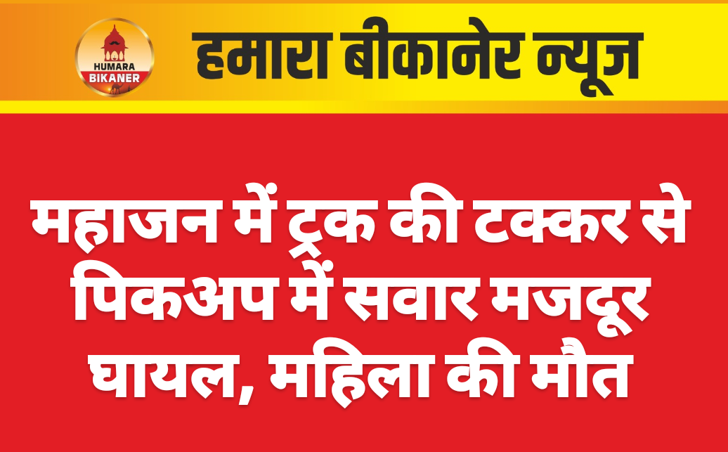 बीकानेर। मजदूरों से भरी एक पिकअप को ट्रक ने टक्कर मार दी। हादसा महाजन पुलिस थाना क्षेत्र के महाजन अस्पताल के पास हुआ है। जहां पर आज मजदूरों से भरी एक पिकअप को ट्रक ने टक्कर मार दी। हादसे में एक दर्जन लोगों के करीब घायल हो गए। जिनको अस्पताल ले जाया गया। जहां पर घायलों का इलाज किया जा रहा है। वहीं गंभीर दो घायलों को पीबीएम रैफर किया गया। जहां पर इलाज के दौरान मुन्नी देवी नाम की महिला की मौत हो गयी।