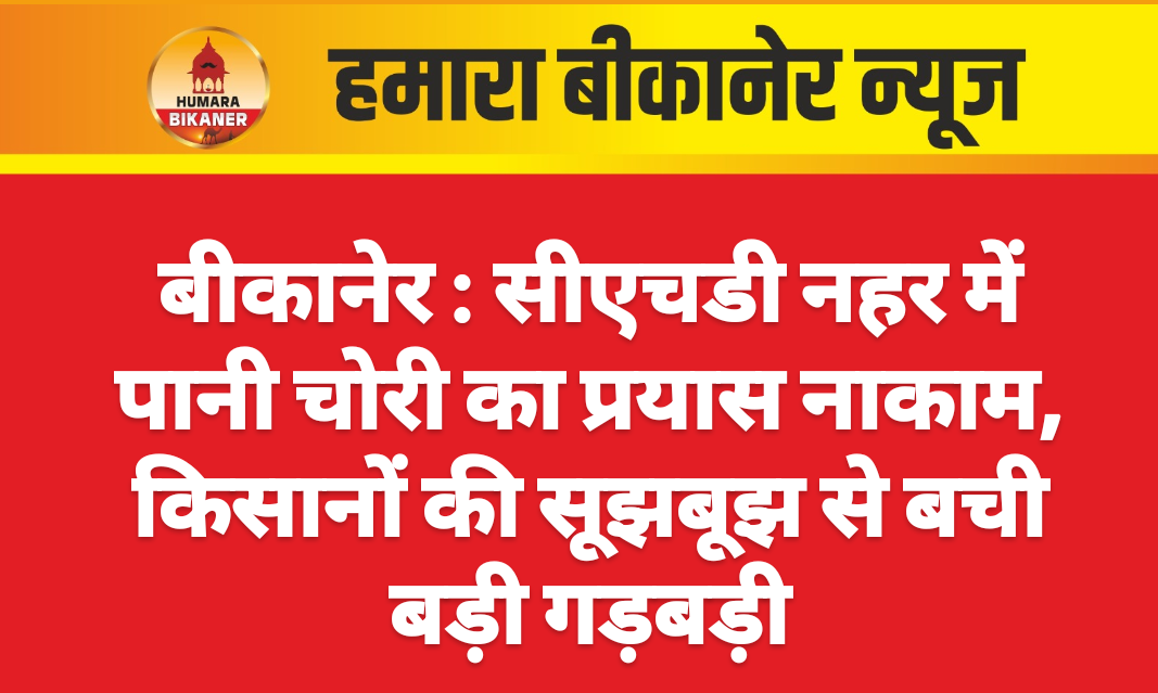बीकानेर। सीएचडी नहर में रात्रि को फिर साइफन लगाकर पानी चोरी करने का प्रयास किसानों की सूझबूझ से विफल हो गया। किसानों के पहुंचने पर चोरी करने वाले साइफन लेकर मौके से भाग गए। इस संबंध में बुधवार को किसानों ने छत्तरगढ़ जल संसाधन खंड के अधीक्षण अभियंता श्रीफल मीणा के कार्यालय में पहुंचकर विरोध जताया। लगातार हो रही पानी चोरी की घटनाओं पर अंकुश लगाने की मांग की। भंवरलाल काजला, नानक राम ज्याणी, भीखा राम तर्ड, खींया राम कुम्हार, तोला राम खिलेरी, बृज लाल शर्मा, तुलसीराम शर्मा आदि ने बताया कि चलती नहर से साइफन लगाकर पानी चोरी करते हुए दो जनों को तीन दिन पूर्व पकड़ा था। उसी क्षेत्र के आसपास मंगलवार रात को भी साइफन लगाकर पानी चोरी का प्रयास किया गया।