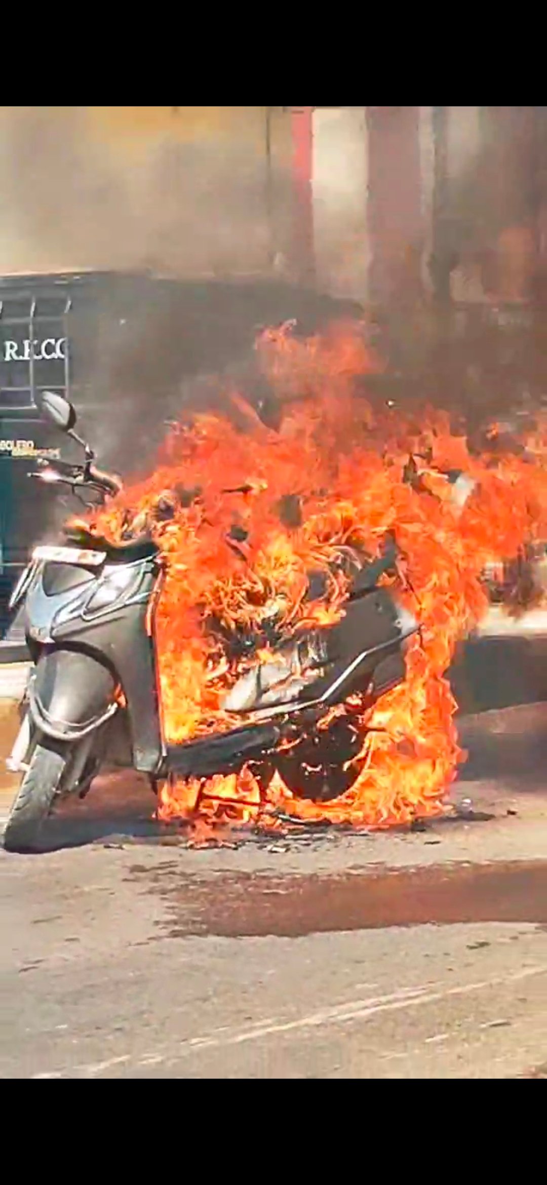 बीकानेर।अचानक स्कूटी के सड़क पर धू-धू कर जलने का वीडियो सामने आया है। घटना एमएस कॉलेज के सामने स्थित ओवरब्रिज की हे। जहां पर आज दोपहर को स्कूटी में आग लग गयी। जानकारी के अनुसार दोपहर करीब 12 बजे के आसपास सड़क पर स्कूटी में आग लग गयी और देखते ही देखते स्कूटी जल गयी। काफी देर तक धूएं की लपटें भी देखी गयी। फिलहाल स्कूटी में आग किस कारण से लगी और स्कूटी किसकी थी। इस बारे में जानकारी नहीं मिल पायी है।