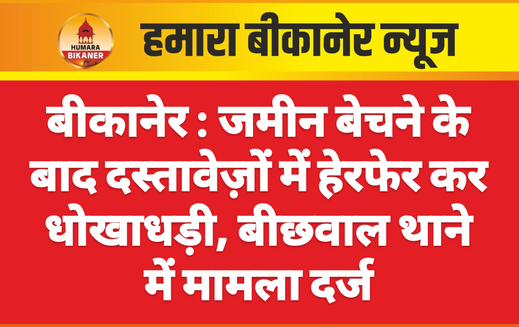 बीकानेर: जमीन बेचने के बाद दस्तावेज में हेरफेर कर धोखाधड़ी करने का मामला सामने आया है। इस संबंध में बीछवाल पुलिस थाने में सुनील कुमार पुत्र जसराज ने मुक़दमा दर्ज करवाया है। परिवादी ने निर्मल कुमार भूरा, उत्तम कुमार भूरा पुत्र दीपचंद भूरा (डायरेक्टर बीकानेर होटल प्राइवेट लिमिटेड), राजेश कुमार, गजानंद स्वामी, कमल कुमार बैद, सुरेंद्र कुमार और अनिल कुमार नाई के ख़िलाफ़ मुक़दमा दर्ज करवाया है।