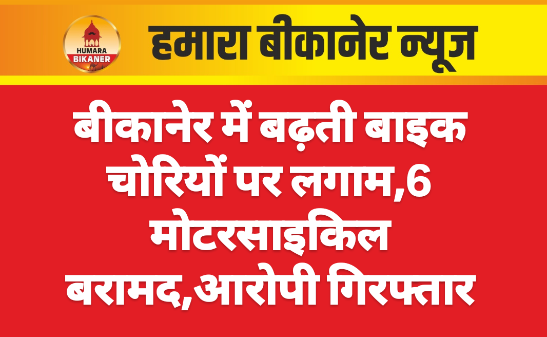 बीकानेर।शहर में बढ़ती बाइक चोरियों के खिलाफ पुलिस ने कार्रवाई करते हुए एक को गिरफ्तार किया है। यह कार्रवाई एसपी के निर्देशों पर नयाशहर पुलिस टीम ने थानाधिकारी कविता पुनिया के नेतृत्व में की है।