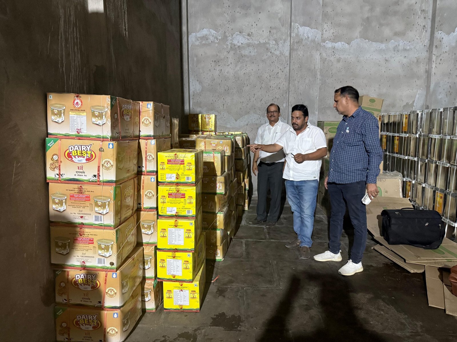 अभिहित अधिकारी एवं मुख्य चिकित्सा एवं स्वास्थ्य अधिकारी डॉ. पुखराज साध ने बताया कि जयपुर से आए केंद्रीय दल के खाद्य सुरक्षा अधिकारी श्री देवेन्द्र राणावत एवं श्री अमित शर्मा के साथ जिले के खाद्य सुरक्षा अधिकारी श्रवण कुमार वर्मा एवं भानू प्रताप सिंह द्वारा बीछवाल औद्योगिक क्षेत्र में संयुक्त कार्यवाही की गई। बीछवाल स्थित मैसर्स मोहन लाल आशीष कुमार के गोदाम में घी श्वेता, घी डेयरी बेस्ट, रिफाइंड सोयाबीन ऑयल विभोर आदि के 6 नमूने लिए गए। नमूनीकरण के पश्चात घी डेयरी बेस्ट जो कि पूर्व में भी अन्य जिलों में अमानक स्तर का पाया गया है, कुल 2800 लीटर को जांच रिपोर्ट आने तक सीज किया गया। इसी प्रकार मेसर्स सेठिया स्वीट प्रोडक्ट से गाय का दूध, सोहन पापड़ी, केसर बाटी, गुलाब जामुन आदि के नमूने लिए गए। मौके पर साफ-सफाई रखने के निर्देश प्रदान किए गए। जन स्वास्थ्य प्रयोगशाला से जांच रिपोर्ट प्राप्त होने पर नियमानुसार अग्रिम कारवाई की जाएगी।