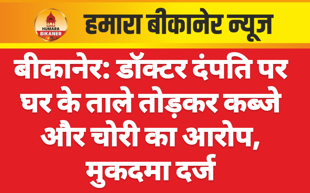 बीकानेर। डॉक्टर दपंति पर घर के ताले तोडने का आरोप लगाते हुए मुकदमा दर्ज करवाया गाय है। मामला कोटगेट पुलिस थाना क्षेत्र में 27 सितंबर की सुबह 9 बजे के आसपा गोगागेट क्षेत्र का है। इस सम्बंध में जोधपुर के रहने वाले सुशील शर्मा ने जयपुर में रहने वाले डॉक्टर विक्रम तंवर, उसकी पत्नी डॉ. सुमन व अन्य के खिलाफ मुकदमा दर्ज करवाया है।
