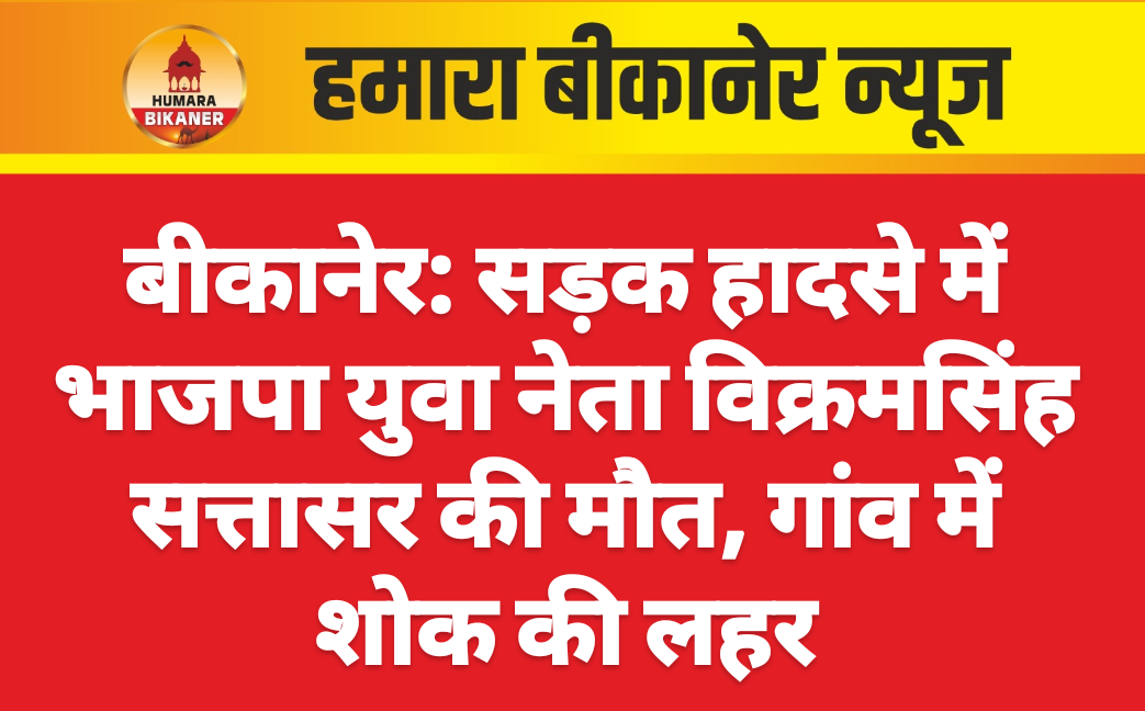 बीकानेर। देर रात भीषण सड़क हादसे में युवक की मौत हो गई। मिली जानकारी के अनुसार सरदारशहर रोड पर गांव आड़सर के निकट एक कार ऊंट से टकरा गई। टक्कर इतनी जबरदस्त थी कि कार सवार युवक अकाल मौत का शिकार हो गया। जागरूक युवा निजी वाहन से दुर्घटना में घायल भाजपा के युवा नेता व सामाजिक रूप से सक्रिय विक्रमसिंह सत्तासर को उपजिला अस्पताल लेकर आए। विक्रमसिंह ने यहां दम तोड़ दिया और शव को मोर्चरी में रखवाया गया। सुबह विक्रमसिंह के गांव सत्तासर में मातम पसर गया है, वहीं आड़सर, मोमासर सहित अनेक गांवो में लोग स्तब्ध है। सुबह खबर फैलने के साथ ही लोग अस्पताल पहुंचने लगे है।