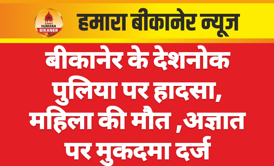 बीकानेर।देशनोक पुलिया के पास हुए हादसे में एक महिला की मौत हो गई। यह हादसा 30 सितंबर को हुआ, जिसमें बिहार हाल बीकानेर निवासी नमीता दास पत्नी जीवनचंद्र की मौत हो गई। इस संबंध में मृतका के पति जीवनचंद्र ने मर्ग रिपोर्ट दर्ज करवायी है। रिपोर्ट में बताया कि उसकी पत्नी नमीता दास व साली पुनीता एक मोटरसाईकिल पर सवार होकर देशनोक करणी माता मंदिर जा रहे थे। देशनोक पुलिया के पास अज्ञात मोटरसाईकिल ने टक्कर मार दी। जिससे नमीता दास की मृत्यु हो गयी। पुलिस ने अज्ञात के खिलाफ मुकदमा दर्ज कर जांच शुरू कर दी।