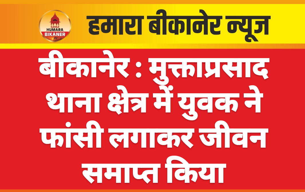 बीकानेर। युवक द्वारा फांसी लगाकर जीवनलीला समाप्त करने की खबर सामने आयी है। घटना मुक्ताप्रसाद पुलिस थाना क्षेत्र की है। जहां पर युवक ने सुसाइड कर लिया। इस सम्बंध में अंसल कॉलोनी निवासी श्रवणराम पुत्र मंागीलाल सुथार ने रिपोर्ट दी है। परिवादी ने बताया कि उसके भाई मदनलाल ने पेड़ से लटककर फांसी लगा ली। जिससे वह अचेत हो गया। अचेत अवस्था में उसे अस्पताल ले जाया गया। जहां पर उसकी मौत हो गयी। पुलिस ने प्रार्थी की रिपोर्ट के आधार पर मर्ग दर्ज कर जांच शुरू कर दी है।