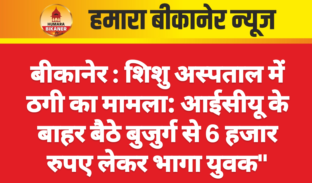 बीकानेर । पीबीएम के शिशु अस्पताल में भर्ती एक मरीज के परिजन से एक युवक रुपए लेकर भाग गया। पीडि़त ने इस संबंध में पीबीएम अस्पताल प्रशासन से लिखित शिकायत की है। हुआ यूं कि छीला काश्मीर निवासी दस्तुराराम का दोहिता 11 वर्षीय मनोहर की तबीयत खराब होने पर उसे शनिवार को शिशु अस्पताल में भर्ती कराया। बालक की हालत चिंताजनक होने पर चिकित्सकों ने उसे आईसीयू में भर्ती कर लिया। रविवार शाम को आईसीयू के बाहर दस्तुराराम बैठा था। तभी एक युवक पर्ची लेकर आया और बोला कि यह जांच करानी है। इस जांच के 1200 रुपए लेगेंगे तुरंत दो। बुजुर्ग कुर्ते की जेब से रुपए निकाल कर गिन रहा था तभी युवक झपट्टा मारकर सारे रुपए ले गया। बुजुर्ग ने बताया कि छह हजार रुपए थे। अब उनके पास कोई पैसा नहीं है। उसके शोर मचाने पर आसपास के लोग दौड़ कर आए। तब बुजुर्ग ने पूरे घटनाक्रम की जानकारी दी। इसके बाद बुजुर्ग ने अस्पताल प्रशासन को अज्ञात युवक के खिलाफ लिखित शिकायत की है।