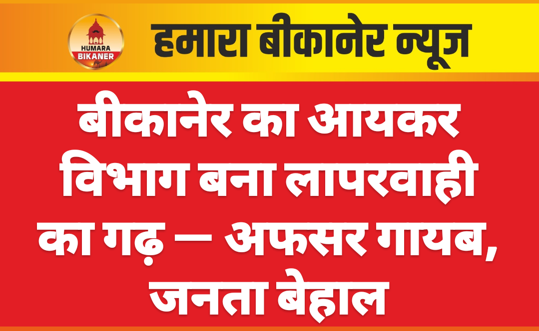 जिस विभाग के दम से देश में विकास योजनाएं बनती हैं और लोगों के गाढ़े खून पसीने से जो विभाग चलता हो, जहां यूपीएससी द्वारा चयनित भारतीय राजस्व सेवा के छह अधिकारी नियुक्त हों, ऐसा बीकानेर का आयकर विभाग अगर लालफीताशाही और लापरवाही के आलम में हो तो देश के भविष्य के प्रति ज्यादा सोचने की जरूरत नहीं, स्वतः प्रमाणित है।रानी बाजार में इनकम टैक्स विभाग का बेहद शानदार चमचमाता कार्यालय, प्रधान आयकर आयुक्त, अतिरिक्त आयकर आयुक्त, उपायुक्त के छह पद, सिर्फ एक पद पर एस आर सैनी (आईआरएस) स्थाई सहायक आयुक्त, जिनको बात करने से भी गुरेज, उन्होंने ऑफिस के अंदर तो आने दिया लेकिन इतनी बेरूखी से पेश आए कि एक अखिल भारतीय सेवा के अधिकारी से उम्मीद नहीं की जा सकती।