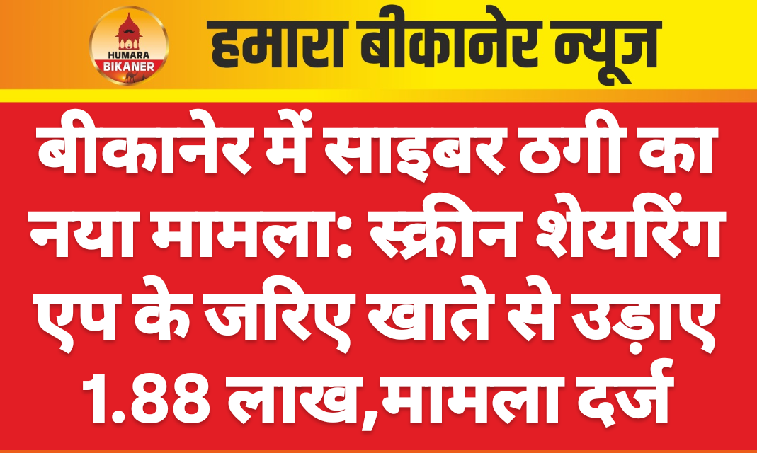 बीकानेर। तेजी से बदलती दुनिया में साइबर ठगी के मामलों में तेजी से बढ़ोतरी हो रही है। लगातार साइबर ठग लगातार नए-नए तरीकों से आमजन से ठगी की जा रही है। ऐसा ही मामला जेएनवीसी पुलिस थाने में दर्ज हुआ है। इस सम्बंध में भगत ङ्क्षसह कॉलोनी निवासी प्रभुराम जाट ने अज्ञात के खिलाफ मुकदमा दर्ज करवाया है।प्रार्थी ने बताया कि 23 जून को किसी अज्ञात व्यक्ति ने मेरे मोबाइल को स्क्रिन सेव एप पर लेकर धोखाधड़ी की और खाते से पैसे निकाल लिए। परिवादी ने बताया कि आरोपी ने उसके खाते से 1 लाख 88 हजार रूपए निकाल लिए। पुलिस ने प्रार्थी की रिपोर्ट के आधार पर मुकदमा दर्ज कर जांच शुरू कर दी है।