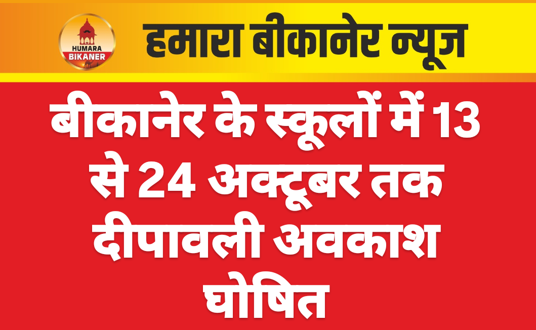 बीकानेर।स्कूलों में दीपावली को लेकर छुट्टियां हो गयी है। यह अवकाश करीब 12 दिनों का होने जा रहा है। ऐसे में अब 25 अक्टूबर से शैक्षिक गतिविधियां शुरू होगी। दरअसल, पूर्व में मध्यावधि अवकाश 16 से 27 अक्टूबर को निर्धारित थे। लेकिन राज्य सरकार की अनुमति के बाद शिक्षा निदेशालय ने शिविरा पंचांग में संशोधन कर मध्यावधि अवकाश की तिथियां 13 से 24 अक्टूबर को निर्धारित की है। वही द्वितीय परख 25 से 28 अक्टूबर तक आयोजित किया जाएगा। उधर, मध्यावधि अवकाश को लेकर डीईओ माध्यमिक किशन दान चारण ने भी निर्देश जारी किए हैं।
