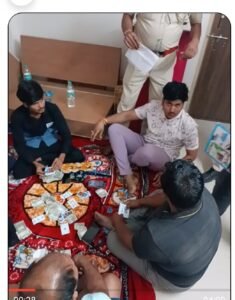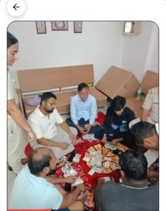 जानकारी के अनुसार, थाना पुलिस को मुखबिर से सूचना मिली थी कि मंगलम सिटी के फ्लैट नंबर 742 में कुछ लोग ताश के पत्तों पर रुपयों का दांव लगाकर जुआ खेल रहे हैं। इस पर थाना प्रभारी (एसएचओ) मोनिका के नेतृत्व में विशेष टीम गठित की गई और देर रात मौके पर दबिश दी गई।