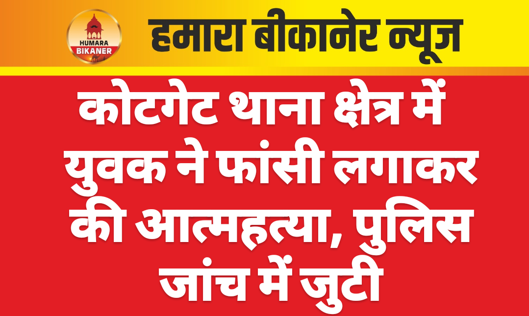 बीकानेर। शहर के कोटगेट थाना क्षेत्र के रेलवे माल गोदाम रोड पर शुक्रवार को एक युवक ने अपने घर के कमरे में फांसी लगाकर आत्महत्या कर ली। सूचना मिलने पर कोटगेट पुलिस तुरंत मौके पर पहुंची और शव को कब्जे में लेकर आगे की कार्रवाई शुरू की।