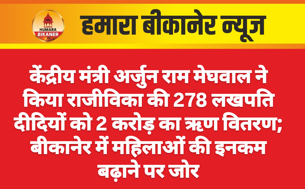 बीकानेर, 13 अक्टूबर। केन्द्रीय विधि एवं न्याय मंत्री श्री अर्जुन राम मेघवाल ने कहा कि बीकानेर जिले में ज्यादा से ज्यादा लखपति दीदी बनाने और महिलाओं की इनकम बढ़ाने का प्रयास किया जाएगा ताकि महिलाएं आर्थिक रूप से सशक्त हों और आत्मनिर्भर बन सके। उन्होंने कहा कि महिलाएं अगर बड़ा सपना देखेंगी तो उसे पूरा करने के लिए पुरुष भी उनके साथ कंधे से कंधा मिलाकर साथ देने को तैयार हो जाएंगे।