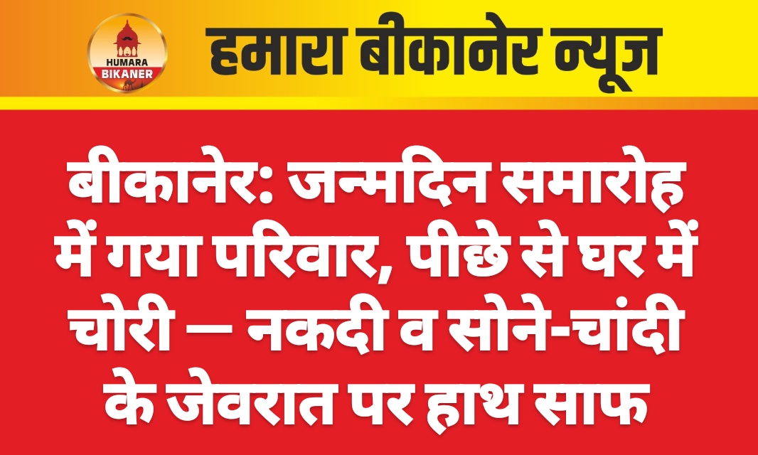 बीकानेर। खुशियों में शामिल होने गए परिवार के पीछे से नुकसान हो जाने की खबर सामने आयी है। इस सम्बंध में कोटगेट पुलिस थाने में बान्द्रा बास निवासी रवि सुंगत ने अज्ञात के खिलाफ मुकदमा दर्ज करवाया है। घटना वाल्मीकि मंदिर के पास बान्द्रा बास के पास 13 अक्टूबर की रात की है। इस सम्बंध में परिवादी ने बताया कि वह ड्राइङ्क्षवग का कार्य करता है। जिसके चलते वह घर से बाहर था।