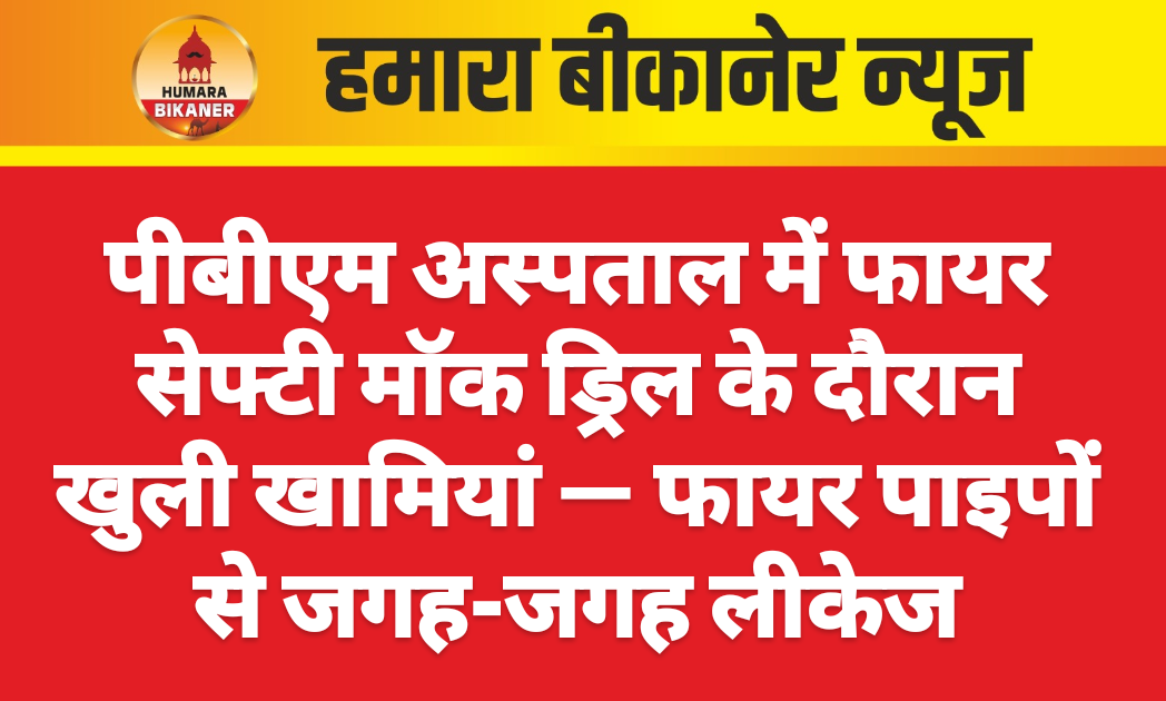 बीकानेर। पिछले कुछ समय से प्रदेश में हो रहे अग्रिकांड के बाद सुरक्षा व्यवस्था को लेकर अब प्रशासन एक्टिव मोड पर आ गया है। इसको लेकर शुक्रवार सुबह पीबीएम के चर्म रोग विभाग में फायर सेफ्टी को लेकर मॉक ड्रिल आयोजित की गई। इस दौरान आग लगने की स्थिति का अभ्यास शुरू हुआ, फायर ब्रिगेड की टीम मौके पर पहुंची लेकिन पानी की तेज धार से आग बुझाने की जगह पाइपों में जगह-जगह से लीकेज होने लगे। जहां पानी को प्रेशर के साथ निकलना चाहिए था, वहीं वह व्यर्थ जमीन पर बहता रहा।