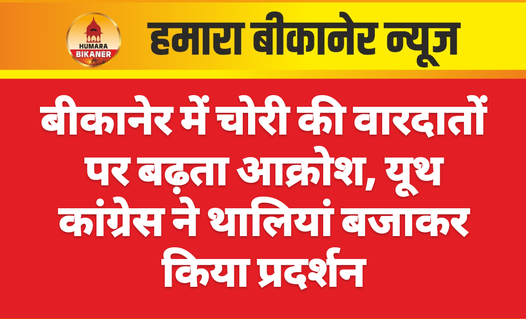 बीकानेर जिले में लगातार चोरों की धमाचौकड़ी जारी है। हर रोज बीकानेर के अलग-अलग क्षेत्रों में सेंधमारी कर माल पार किया जा रहा है। चोरों के हौसले इतने बुलंद हो गए है कि अब तो भगवान के घर पर भी चोरी हो रही है। करीब दो वर्ष पूर्व कतरियासर स्थित जसनाथ जी मंदिर से चोरी हुए चांदी के छत्र की बरामदगी को लेकर आज कलेक्ट्रेट में अनूठे तरीके से प्रदर्शन किया गया।यूथ कांग्रेस के अध्यक्ष भंवरलाल कूकणा और अजय सिद्ध के नेतृत्व में सैकड़ों युवाओं ने प्रशासन का ध्यान आकर्षित करवाने के लिए थालियां बजाकर प्रदर्शन किया। जिसके बाद एक प्रतिनिधि मंडल भंवरलाल कूकणा के नेतृत्व में पुलिस के अधिकारियों से मिला। इस सम्बंध में यूथ कांग्रेस के अध्यक्ष भंवर कूकणा ने बताया कि बीकानेर जिले में लगातार चोरी की वारदातों पर बढ़ोतरी है।