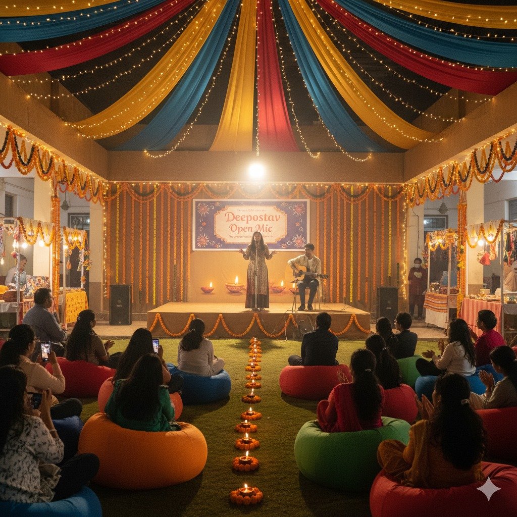 एडिटर एसोसिएशन की डॉ मुदिता पोपली ने बताया कि इस ओपन माइक में भाग लेने वाले कलाकार कविता, शायरी, एकल गीत, कहानी, नाट्य प्रस्तुति, कॉमेडी, लोक संगीत, या किसी भी रचनात्मक अभिव्यक्ति के रूप में प्रदर्शन कर सकते हैं। दीपोत्सव का यह आयोजन “वोकल फॉर लोकल” की भावना को भी मजबूत करेगा, जहां स्थानीय प्रतिभाएं शहर के सामने चमकेंगी।