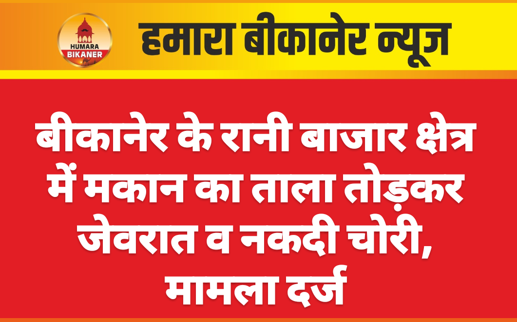 शहर में चोरी के मामले लगातार बढ़ते जा रहे हैं। ताजा मामला कोटगेट थाना क्षेत्र के रानी बाजार से सामने आया है। डागा चौक निवासी शिवकुमार उपाध्याय ने मामला दर्ज करवाते हुए बताया कि उसकी बहन मोहन मिष्ठान भंडार के पास किराए के मकान में रहती है।जहां 15 और 16 अक्टूबर की दरमियानी रात अज्ञात चोरों ने मकान के मुख्य दरवाजे का ताला तोड़ दिया। चोरों ने अलमारियों के ताले तोड़े, सामान इधर-उधर बिखेर दिया और लॉकर तोड़कर उसमें रखे सोने चांदी के जेवरात तथा नकदी चोरी कर ली। पुलिस ने अज्ञात आरोपियों के खिलाफ मामला दर्ज कर जांच जिले सिंह को सौंप दी है।