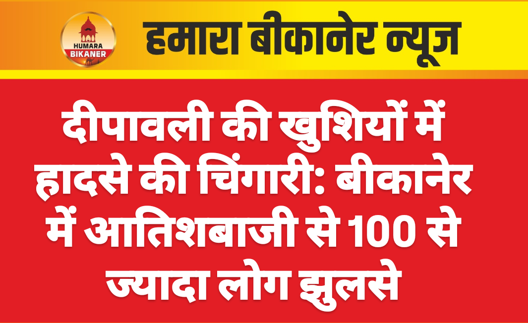- बीकानेर। बीकानेर में दीपावली के दौरान आतिशबाजी करते हुए 100 से ज्यादा लोग झुलस गए। हालांकि कोई भी गंभीर रूप से नहीं झुलसा, ऐसे में किसी को भर्ती करने की जरूरत नहीं पड़ी। पीबीएम अस्पताल में डॉक्टर्स की टीम चौबीस घंटे तैनात रही, वहीं मारवाड़ जन सेवा समिति के कार्यकर्ताओं ने भी झुलसे हुए लोगों के इलाज के लिए विशेष इंतजाम किए। जानकारी के अनुसार पिछले दो दिन में बीकानेर के अनेक क्षेत्रों में आतिशबाजी करते हुए सौ से ज्यादा लोग घायल हुए हैं। कोई सामान्य झुलसा तो कोई थोड़ा ज्यादा, लेकिन किसी को गंभीर स्थिति में अस्पताल में नहीं लाना पड़ा। ग्रामीण क्षेत्रों में कई जगह हल्की आग भी लगी, लेकिन कोई व्यक्ति इसकी चपेट में नहीं आया। पीबीएम हॉस्पिटल के ट्रोमा सेंटर में 3 दिन लगातार मारवाड़ जनसेवा समिति ने सेवाएं दी।लगभग तीन दिनों में 80 लोग पटाखों से जलकर ट्रोमा सेंटर पहुंचे। वहीं कुछ लोग जिला अस्पताल और आसपास के अस्पतालों में भी पहुंचे। समिति सदस्यों को डॉक्टर और अस्पताल प्रशासन ने सहयोग किया। ज्यादातर लोग अनार और चकरी से जले थे। तीन लोग पोटाश की चपेट में आने से झुलस गए, जिनका इलाज हाथों हाथ ट्रोमा सेंटर में कराया गया। शरीर के कई हिस्सों में पोटाश के कारण आग लगी।