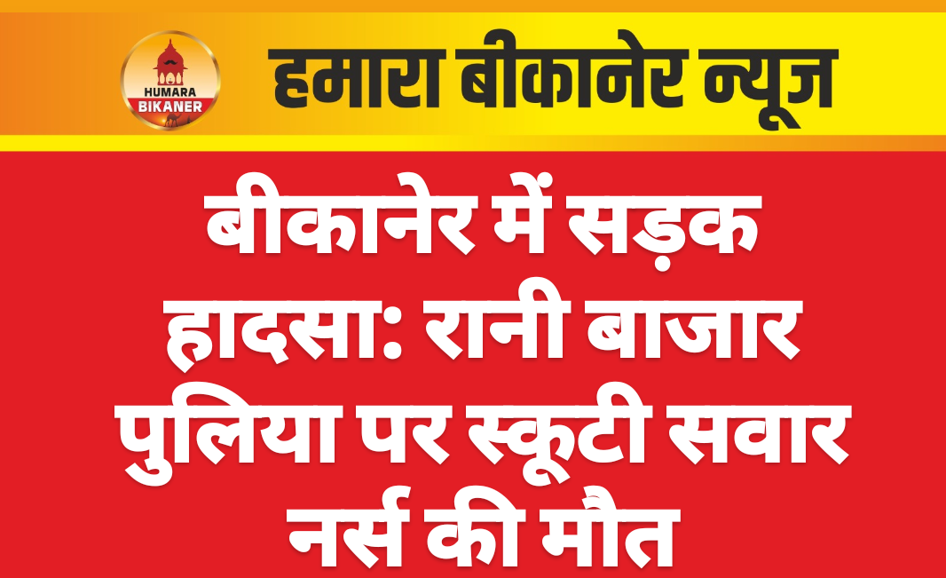बीकानेर।सड़क हादसे में एक की मौत हो जाने की खबर सामने आयी है। घटना बीती रात को करीब 9 बजे के आसपास की है। जानकारी के अनुसार रानी बाजार पुलिया पर स्कूटी को एक बाइक ने टक्कर मार दी। जिससे स्कूटी पर सवार सोनिया नायक नाम की युवती की मौत हो गयी। सोनिया मारवाड़ हॉस्पीटल में नर्सिंग स्टॉफ बतायी जा रही है। हादसे के बाद आसपास के लोग सोनिया को लेकर अस्पताल पहुंचे लेकिन तब तक उसकी मौत हो गयी।