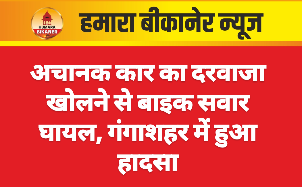 बीकानेर।अचानक कार का दरवाजा खोलने से बाइक के भिड़ जाने की खबर सामने आयी हे। घटना गंगाशहर पुलिस थाना क्षेत्र में 20 अक्टूबर की है। इस सम्बंध में सुजानदेसर निवासी ओमप्रकाश ने रामपुरा बस्ती निवासी आमिर खान के खिलाफ मुकदमा दर्ज करवाया है। प्रार्थी ने बताया कि उसके पिता बाबूलाल बाइक लेकर जा रहे थे।