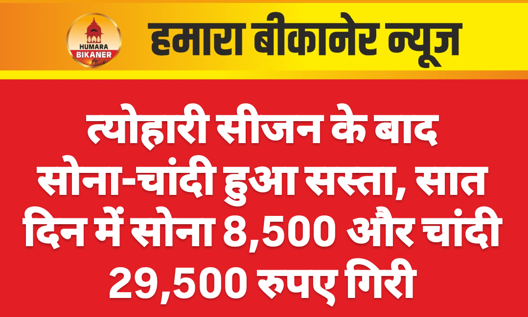 देश में त्योहारी सीजन बीत जाने के बाद सोने और चांदी की कीमत में लगातार गिरावट हो रही है। पिछले 10 दिन में चांदी की कीमत 29 हजार 500 रुपए कम हो गई है। वहीं स्टैंडर्ड सोने की कीमत 7 दिन में 8 हजार 500 रुपए घट गई है।वहीं कीमतें कम होने से एक बार फिर सर्राफा बाजार में ग्राहकों की रौनक देखने को मिल रही है। सर्राफा व्यापारियों के अनुसार अंतरराष्ट्रीय बाजार में गिरावट के साथ ही भारतीय बाजार में डिमांड कम होने की वजह से कीमती धातुओं की कीमत में गिरावट हो रही है। जो अगले कुछ दिनों तक जारी रह सकती है।