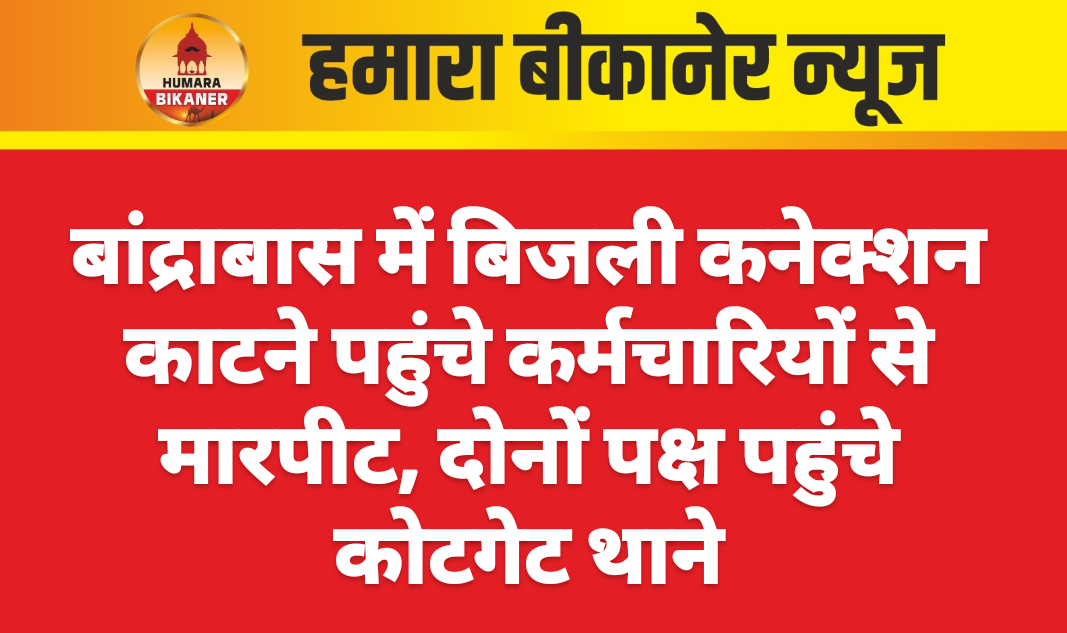 बीकानेर। बीकानेर के बांद्रा बास क्षेत्र में एक घर में बिजली कनेक्शन काटने पहुंचे बिजली कंपनी के संविदा कर्मियों के साथ मारपीट की गई। उधर, दूसरे पक्ष ने इन कर्मचारियों द्वारा दुव्र्यवहार करने का आरोप लगाया गया है। फिलहाल, दोनों पक्ष कोटगेट थाने में पहुंचे हुए हैं।बिजली कंपनी बीकेईएसएल के बकाया बिल पर बिजली काटने का ठेका दिया गया है। इसी ठेकेदार से जुड़े कर्मचारी बि_ल जोशी पुत्र बृजरतन निवासी जोशीवाडा, दिनेश पुत्र मनफूल राम निवासी पांच नंबर रोड गंगा शहर, शोएब पुत्र मो. शरीफ निवासी बांद्रा बास कनेक्शन काटने के लिए गए थे। इस दौरान पक्षों में विवाद हो गया। इन तीनों ने कोटगेट थाने में शिकायत दी है कि उनके साथ मारपीट की गई। ये लोग संतोष मारु के घर बिजली का कनेक्शन काटने गए थे। आरोप है कि किशन मारू, मुकेश मारू, संतोष ने मारपीट की। वहीं संतोष मारु का आरोप है कि ठेकेदार के कर्मचारियों ने उनके साथ मारपीट की। संतोष मारु ने भी थाने पहुंचकर शिकायत दर्ज कराई है।