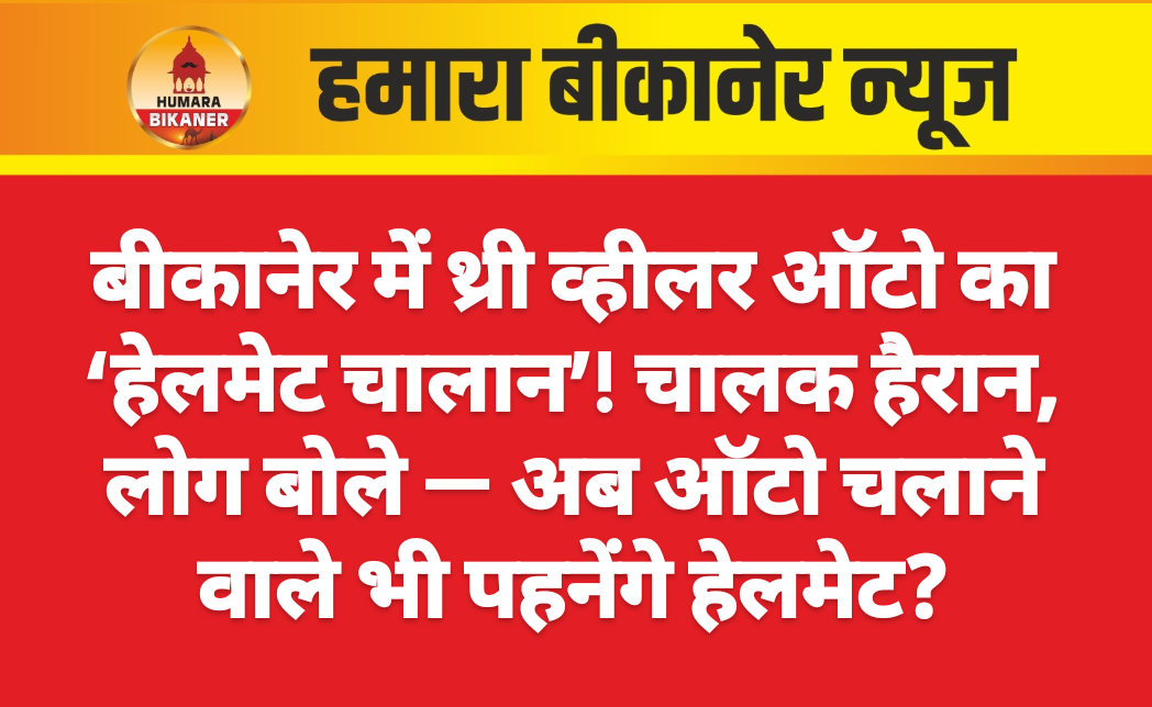 बीकानेर, 25 अक्टूबर। बीकानेर में ट्रैफिक पुलिस का एक अनोखा चालान सोशल मीडिया पर चर्चा का विषय बन गया है। शहर में एक थ्री व्हीलर ऑटो टैक्सी (RJ07PB5262) पर बिना हेलमेट वाहन चलाने का चालान काट दिया गया।