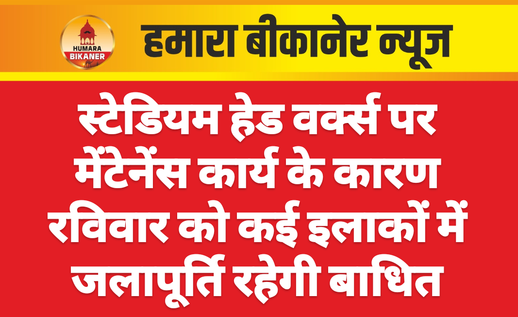 - बीकानेर। शहर के स्टेडियम हेड वक्र्स पर रविवार (26 अक्टूबर) को मोटर पंप अनुरक्षण व मरम्मत कार्य होने के कारण बीकानेर शहर के बाहरी क्षेत्रों जैसे- सांखु डेरा जोन, जय नारायण व्यास कॉलोनी जोन, पवनपुरी जोन, स्टेडियम हेड वर्क्स जोन की जलापूर्ति रविवार को आंशिक बाधित रहेगी। यह जानकारी अधिशाषी अभियंता ऋतु मिसन ने दी।