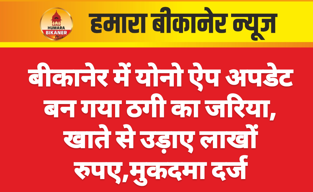 अब योनो एप अपडेट के नाम पर लाखों रुपए फ्रॉड का मामला सामने आया है। इस संबंध में मरूधर नगर निवासी सुरेश कुमार सोलंकी ने बीकानेर साईबर पुलिस थाने में अज्ञात व्यक्ति के खिलाफ मुकदमा दर्ज करवाया है।पुलिस के अनुसार परिवादी सुरेश कुमार सोलंकी ने रिपोर्ट देते हुए बताया कि उसके बैंक खाते से योनो एप अपडेट नाम पर फ्रॉड करते हुए चार लाख बीस हजार सात सौ रुपए निकाल लिये। इस तरह उसके साथ साईबर फ्रॉड हुआ है। पुलिस ने परिवादी की रिपोर्ट पर अज्ञात व्यक्ति के खिलाफ मुकदमा दर्ज कर जांच शुरू कर दी।