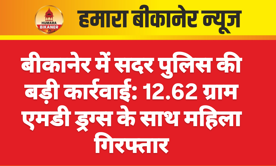 अवैध नशे के साथ पुलिस ने एक महिला को गिरफ्तार किया है। यह कार्रवाई बीकानेर की सदर पुलिस द्वारा की गई। जिसमें भुट्टा का बास निवासी सबिना उर्फ हिना (22) पत्नी मेहंदी हसन भुट्टा को 12.62 ग्राम अवैध मादक पदार्थ एमडी सहित गिरफ्तार किया है।थानाधिकारी दिगपाल सिंह के नेतृत्व में एसआई रतनलाल मय टीम ने यह कार्रवाई दरगाह गार्ड के पास की। पुलिस ने आरोपिया सबिना उर्फ हिना के खिलाफ एनडीपीएस एक्ट के तहत मुकदमा दर्ज किया, जिसकी जांच व्यास कॉलोनी पुलिस थाने में कार्यरत एसआई शारदा को सौंपी गई है।