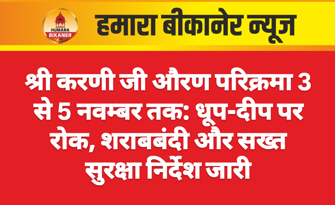 श्री करणी मन्दिर निजी प्रन्यास की ओर से इस वर्ष श्री करणी जी औरण परिक्रमा का आयोजन 03 से 05 नवंबर 2025 के बीच किया जाएगा। परिक्रमा के दौरान मन्दिर दो दिनों तक 24 घंटे दर्शनार्थियों के लिए खुला रहेगा, ताकि श्रद्धालु निर्बाध रूप से दर्शन का लाभ ले सकें।