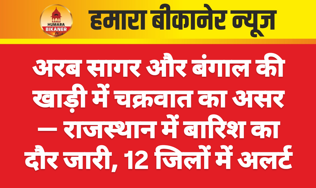 अरब सागर और बंगाल की खाड़ी में आए चक्रवात के कारण राजस्थान में बारिश का दौर जारी है। मौसम विभाग ने आज भी प्रदेश के 12 जिलों में बारिश का येलो अलर्ट जारी किया है। मौसम विभाग की मानें तो एक और नया पश्चिमी विक्षोभ 3 नवंबर को पुनः सक्रिय होने से पश्चिमी व पूर्वी भागों में मेघगर्जन के साथ हल्की-मध्यम बारिश होने की संभावना है। बीते 24 घंटे में कई जिलों में रेकॉर्ड बारिश हुई है। बीते 24 घंटों में सर्वाधिक बारिश बूंदी के नैनवां में 130 मिलीमीटर दर्ज की गई है। इसके अलावा भीलवाड़ा में 88 और चित्तौडगढ़ में 68 मिलीमीटर बारिश दर्ज की गई। मौसम केन्द्र के अनुसार अक्टूबर महीने में नैनवां, भीलवाड़ा और चित्तौडगढ़ में पहली बार इतनी बारिश रेकॉर्ड की गई है। इधर, बारिश के चलते हवा मेंं नमी बढ़ने से दिन में सर्दी का अहसास होने लगा। दिन और रात के ताामान गिरावट दर्ज की गई। दिन का पारा पांच और रात का पारा चार डिग्री तक गिर गया।