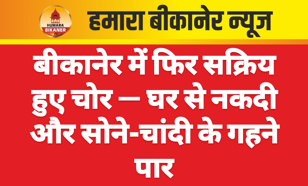 बीकानेर।शहर के कोटगेट पुलिस थाना क्षेत्र में चोरों ने एक मकान पर धावा बोलते हुए नकदी व सोने-चांदी का सामान चोरी कर ले गए। चोरी की यह वारदात 27 अक्टूबर को रोशनी घर के पीछे की गली केजी कॉप्लेक्स के सामने रानी बाजार निवासी ऋषि कुमार के घर पर हुई। इस संबंध में ऋषि कुमार ने पुलिस को रिपोर्ट देते हुए अज्ञात चोर के खिलाफ मुकदमा दर्ज कराया है। परिवादी ने बताया कि अज्ञात व्यक्ति उसके घर से एक मोबाइल रेडमी, नकद 40 से 50 हजार रुपए, सोने की चेन, अंगुठियां, चुडिय़ां, चांदी के बर्तन आदि चोरी कर ले गया। पुलिस ने परिवादी की रिपोर्ट पर मामला दर्ज कर जांच शुरू कर दी।