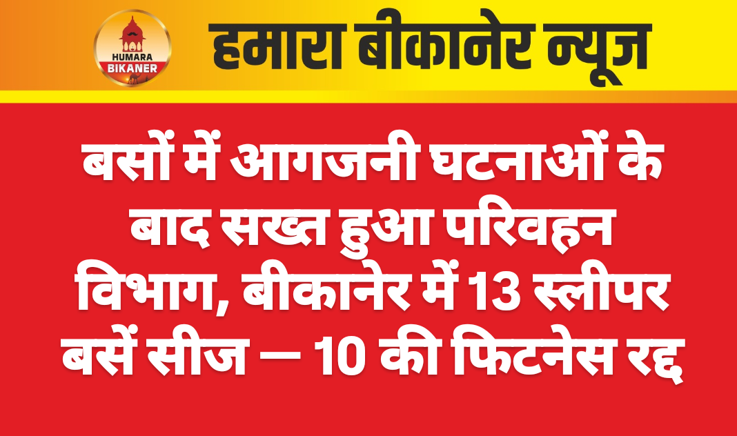 बीकानेर। हाल ही में प्रदेश के विभिन्न जिलों में स्लीपर और एसी कोच बसों में आगजनी की घटनाओं के बाद अब परिवहन विभाग पूरी तरह सख्त हो गया है। बीकानेर प्रादेशिक परिवहन विभाग की फ्लाइंग टीम ने 15 अक्टूबर से 28 अक्टूबर 2025 तक चलाए गए विशेष अभियान में 13 स्लीपर बसों को सीज किया है, जबकि 10 बसों की फिटनेस रद्द कर दी गई है। इस अवधि में कुल 68 वाहनों को सीज किया गया, जबकि 1 अक्टूबर से 28 अक्टूबर तक 1079 चालान बनाए गए।इनमें अधिकतर मामले फिटनेस मानकों का उल्लंघन,अग्निशमन उपकरणों की अनुपलब्धता, अवैध स्लीपर कोचिंग और यात्रियों की सुरक्षा मानकों की अनदेखी से जुड़े हैं। राजस्थान में स्लीपर बसों की कुल संख्या करीब 3200 है। इनमें से करीब 35% स्लीपर में बदली गई हैं, जिनकी कोई तकनीकी मंजूरी नहीं है। फायर सेफ्टी और इमरजेंसी उपकरणों का मानक पालन करने वाली बसें 50% से भी कम हैं। बीकानेर जिले में जब्त की गई हर चौथी बस की फिटनेस अवधि समाप्त पाई गई है। इन आंकड़ों से स्पष्ट है कि कई निजी संचालक बिना सुरक्षा मानकों के बसें सड़कों पर उतार रहे हैं।