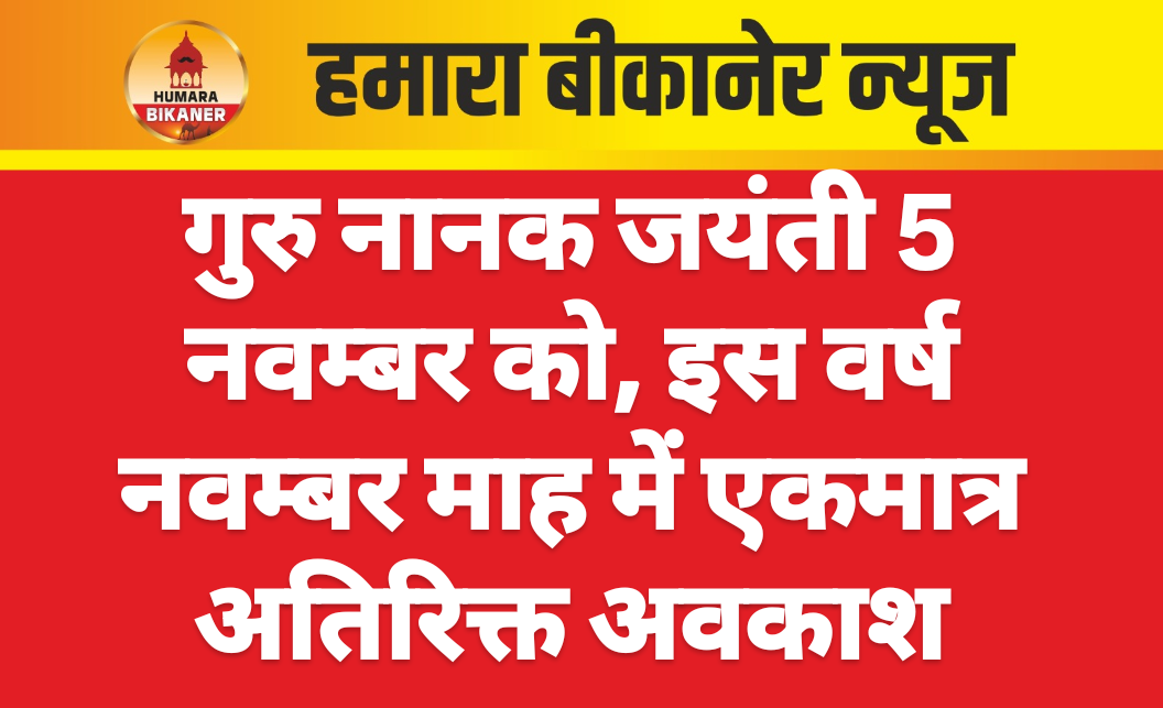 5 नवंबर यानि बुधवार को प्रदेशभर में स्कूलों में अवकाश रहेगा। इस दिन प्रदेशभर के सभी सरकारी और निजी स्कूल-कॉलेज बंद रहेंगे। साथ ही सभी सरकारी कार्यालयों, शैक्षणिक संस्थानों में भी कार्य नहीं होगा। राज्य सरकार ने इसे राजकीय अवकाश घोषित किया है।इस वर्ष नवम्बर माह में यह एकमात्र अतिरिक्त अवकाश रहेगा। गुरु नानक जयंती सिख धर्म के पहले गुरु और संस्थापक श्री गुरु नानक देव जी की जयंती के रूप में मनाई जाती है। गुरु नानक देव जी की जयंती हर वर्ष कार्तिक पूर्णिमा के दिन मनाई जाती है। इस वर्ष यह तिथि 5 नवम्बर को पड़ रही है। राजस्थान सहित पूरे देश में यह पर्व श्रद्धा और भक्ति के साथ मनाया जाएगा।