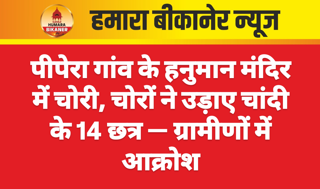 बीकानेर। बीकानेर में चोरों के हौसले लगातार बुलंद नजर आ रहे हैं। मंदिरों में चोरी की घटनाएं थमने का नाम नहीं ले रही हैं। लूणकरणसर पुलिस थाना क्षेत्र के पीपेरा गांव में हनुमानजी मंदिर से चोरों ने सेंध लगाकर चांदी के 14 छत्र चोरी कर लिए। सोमवार 3 नवंबर की सुबह मंदिर के पुजारी श्रीराम पूजा के लिए पहुंचे तो उन्होंने मंदिर के ताले टूटे हुए पाए। उन्होंने तुरंत सरपंच और गांव के अन्य गणमान्य लोगों को सूचना दी। इसके बाद ग्रामीणों ने पुलिस को खबर दी।सूचना पर पहुंची पुलिस ने स्थल निरीक्षण किया और जांच शुरू की। प्रारंभिक जांच में सामने आया है कि चोरी देर रात की गई है। पुलिस ने घटनास्थल से मिले पगमार्क के आधार पर दो संदिग्धों की तलाश शुरू कर दी है। साथ ही आसपास लगे सीसीटीवी कैमरों की भी जांच की जा रही है, ताकि चोरों की पहचान व भागने के मार्ग का सुराग मिल सके। मंदिर में हुई इस चोरी को लेकर ग्रामीणों में भारी रोष है और उन्होंने पुलिस से जल्द कार्रवाई कर आरोपियों को गिरफ्तार करने की मांग की है।