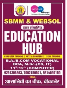 बीकानेर। बीकानेर शहर के अंदरूनी क्षेत्र शहरी परकोटे में श्री बीकानेर महिला मंडल स्कूल और वेबसाल द्वारा संचालित एजुकेशन हब का शुभारंभ आसानियों के चौक में हुआ। श्री बीकानेर महिला मंडल स्कूल के डायरेक्टर गजेंद्र सिंह राठौड़ ने बताया कि आजादी के बाद से संस्थान शिक्षा और उच्च शिक्षा के साथ में नवाचारों को भी बढ़ावा दे रहा है यहाँ शिक्षा के साथ ही रोजगार और स्वरोजगार से जुड़े हुए कौशल प्रशिक्षण प्रोग्राम पहले भी संचालित किए गए हैं। आसानियों चौक ब्रांच में नियमित कक्षाओं का संचालन प्रारंभ हो गया है। वेबसाल डायरेक्टर डॉ. अमित व्यास ने बताया कि संस्थान का शुभारम्भ वैदिक मंत्रोउचार के साथ परिवार की बेटियों द्वारा ‘मेरी बेटी-सेलिब्रिटीÓ की थीम पर किया गया। एक्सपर्ट ट्रेनर इंजी. कीर्ति व्यास, वैशाली व्यास ने बताया कि राजस्थान सरकार के मान्यता प्राप्त कोर्स और सभी सरकारी नौकरी के लिए आवश्यक आरकेसीएल आरएससीआईटी, रोजगारपरक टैली प्राइम जीसटी एकाउंटिंग, बीसीए, बीए, बीकॉम वोकेशनल कंप्यूटर, कक्षा 11वीं और 12वीं आर्ट और कॉमर्स की विशेष क्लासेज एक ही परिसर में कॉलेज व्याख्याता और विषय विशेषज्ञ द्वारा करवाई जाएगी। छात्र और छात्राओं के लिए अलग से बैच का प्रबंध किया गया है साथ ही बेहतर कंप्यूटर शिक्षा के लिए कंप्यूटर लैब भी बनाई गई है मोहित व्यास, हर्षित व्यास ने बताया कि एजुकेशन हब में करियर काउंसलिंग सेल और शॉर्ट टर्म कोर्स का भी संचालन किया जाएगा। राजेंद्र व्यास व आनंद व्यास ने आभार व्यक्त किया तथा राघवेंद्र व्यास एवं सुनील सिंह, रितेश व्यास ने अतिथियों का स्वागत किया।