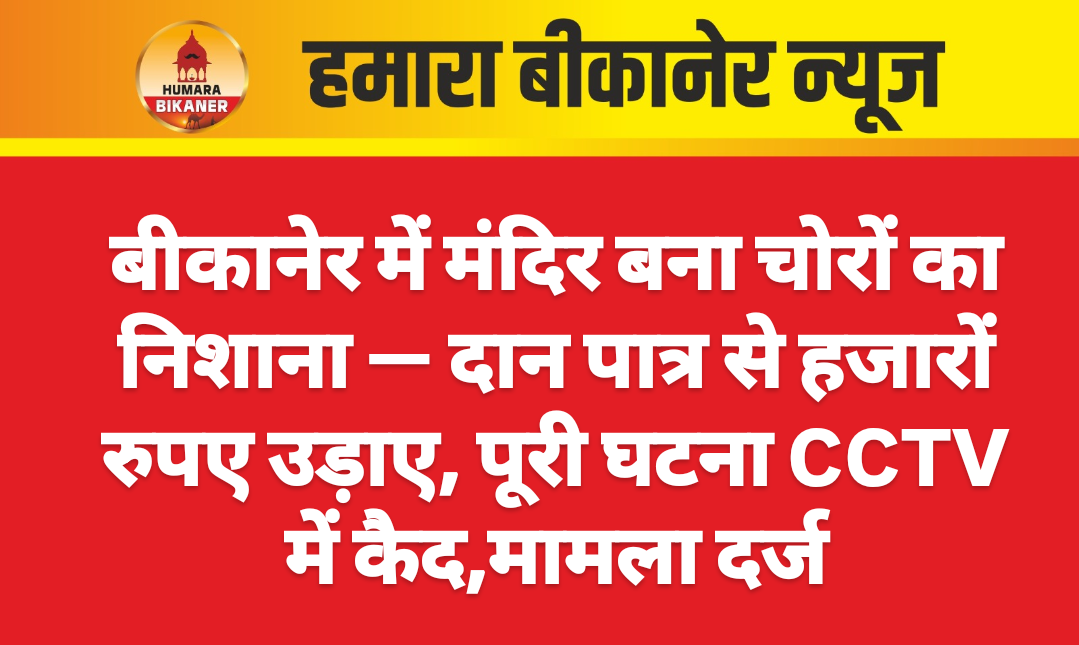 बीकानेर।जिले में लगातार चोर मंदिरों को अपना निशाना बना रहे है। लगातार चोरी की वारदातें अब देवस्थलों पर हो रही है। ऐसी ही खबर गंगाशहर क्षेत्र से सामने आयी है। जहां पर 4-5 नवंबर की रात को अज्ञात चोर ने वारदात को अंजाम दिया। इस सम्बंध में श्योपतराम विश्नोई ने अज्ञात के खिलाफ मुकदमा दर्ज करवाया है।प्रार्थी ने बताय कि 4-5 की रात को अज्ञात व्यक्ति जो कि मुंह पर कपड़ा बांधे हुए था। उसने मंदिर में रखे दान पात्र जिसमें करीब 25-30 हजार रूपए थे वो उठाकर ले गया साथ ही मंदिर परिसर से ही एक अन्य दान पात्र को तोड़कर पैसे निकालकर ले गया। पूरी घटना सीसीटीवी में कैद हो गयी। जिसमें एक व्यक्ति चोरी करते हुए दिखाई दे रहा है। पुलिस ने मामला दर्ज कर जांच शुरू कर दी है।