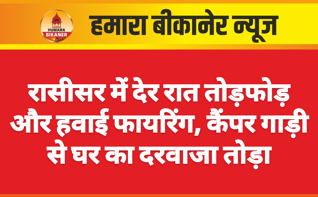 घटना रासीसर में 5 नवंबर की रात को करीब साढ़े दस बजे के आसपास की है। इस सम्बंध में परिवादी ने बताया कि आरोपी कैंपर गाड़ी लेकर आए और उसके घर का दरवाजा गाड़ी के गेट से मारते हुए तोड़ दिया। परिवादी ने बताया कि आरोपियों ने लाठी, सरियों के साथ जबरन घर में घुसे और हवाई फायर किया। पुलिस ने प्रार्थी की रिपोर्ट के आधार पर मुकदमा दर्ज कर जांच शुरू कर दी है।