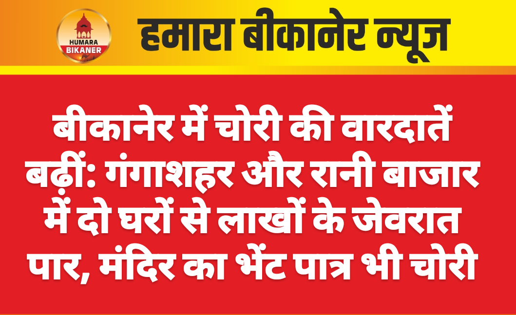 बीकानेर। बीकानेर में चोरी की वारदातें लगातार बढ़ रही हैं। गंगाशहर और रानी बाजार इलाके में बीती रात दो घरों से लाखों के जेवरात चोरी हो गए, जबकि एक दिन पहले जंभेश्वर मंदिर का भेंट पात्र भी चोरी हो गया। कई सीसीटीवी कैमरों के फुटेज मिलने के बावजूद पुलिस को अब तक कोई सफलता नहीं मिली है। गंगाशहर में पुराने घर से लाखों के जेवर चोरी गंगाशहर थाना क्षेत्र में सेंट खेतेश्वर स्कूल के पास रहने वाले फूलचंद बांठिया ने रिपोर्ट दी कि उनके पुराने घर में घुसे चोर सोने-चांदी के जेवर चोरी कर ले गए। बांठिया नया मकान बनाकर वहां शिफ्ट हो चुके थे, जबकि पुराने घर में मूल्यवान आभूषण रखे हुए थे। उन्होंने पुलिस को सीसीटीवी फुटेज भी सौंपे हैं, लेकिन चोरी की गुत्थी अब तक नहीं सुलझी। जंभेश्वर मंदिर से भेंट पात्र उठा ले गया चोर इसी क्षेत्र में जंभेश्वर मंदिर में स्थित निज मंदिर के सामने रखा भेंट पात्र चोर उठा ले गया। मंदिर में लगे सीसीटीवी कैमरे में आरोपी कैद हुआ, पर पुलिस अभी तक उसे पकड़ नहीं पाई है। लगातार दो चोरी की घटनाओं से क्षेत्रवासियों में रोष है। रानी बाजार में सूने घर को बनाया निशाना कोटगेट थाना क्षेत्र के रानी बाजार इलाके में भी चोरी की दूसरी बड़ी वारदात दर्ज हुई है। विक्रम सिंह ताखर की रिपोर्ट के अनुसार उनकी भांजी के चौपड़ा कटला स्थित मकान में चोरों ने घुसकर सोने-चांदी के जेवर, कीमती मूर्तियां, कपड़े, गर्म रजाइया और बर्तन तक चुरा लिए। परिवार उस समय जयपुर गया हुआ था। होने के बावजूद पुलिस खाली हाथ, बढ़ी चिंता तीनों मामलों में सीसीटीवी फुटेज उपलब्ध होने के बावजूद चोर अब तक पुलिस की पकड़ से दूर हैं। लगातार बढ़ती वारदातों से गंगाशहर और रानी बाजार क्षेत्र में लोगों में चिंता का माहौल है। स्थानीय लोग पुलिस गश्त बढ़ाने और कार्रवाई तेज करने की मांग कर रहे हैं।