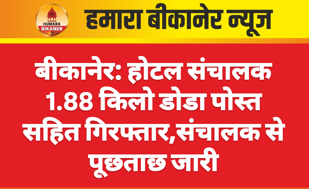 बीकानेर।अवैध नशीले पदार्थो के खिलाफ पुलिस ने कार्रवाई करते हुए होटल संचालक को गिरफ्तार किया है। यह कार्रवाई श्रीडूंगरगढ़ पुलिस टीम ने सरदारशहर रोड़ पर स्थित होटल में की है। जहां पर पुलिस टीम ने सूचना के आधार पर दबिश देकर अवैध नशीले पदार्थ जब्त किए है। पुलिस को होटल में करीब एक किलो 880 ग्राम अवैध डोडा पोस्त मिला। जिसे पुलिस ने जब्त कर होटल संचालक कैलाश पुत्र कालूराम को गिरफ्तार किया है। जिससे अवैध डोडा की खरीद फरोख्त के सम्बंध में पूछताछ जारी है।