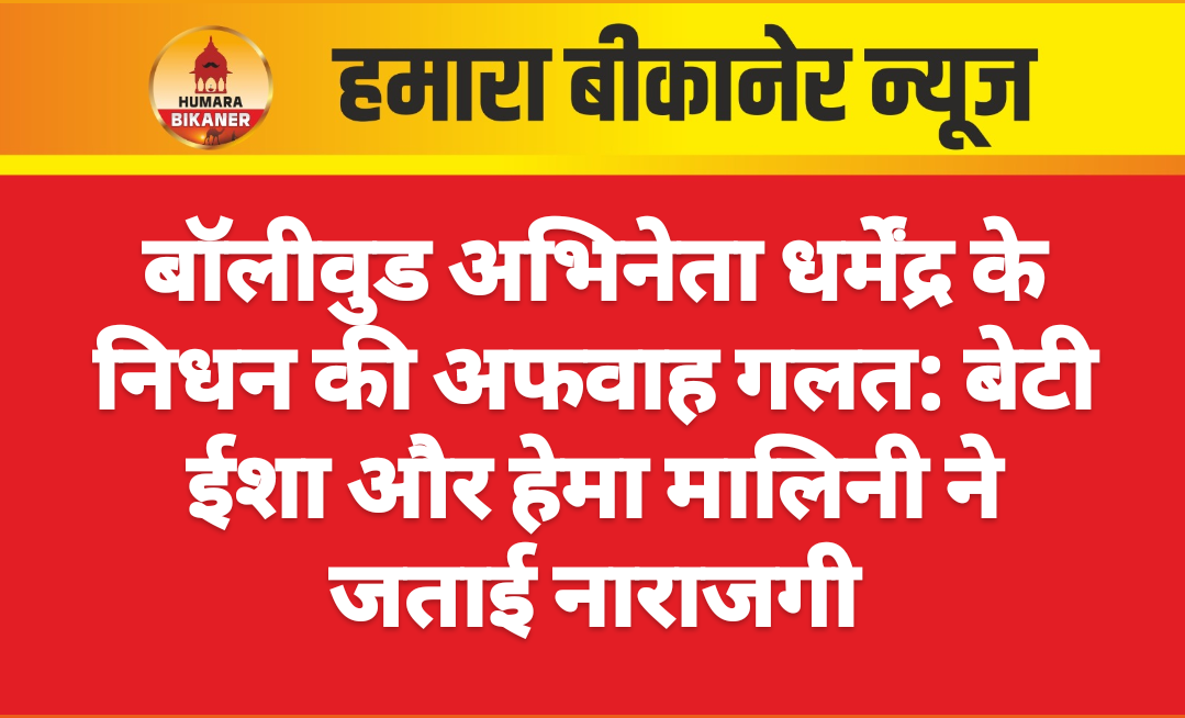बीकानेर।बॉलीवुड अभिनेता धर्मेंद्र (89) की बेटी ने उनके निधन की खबर को गलत बताया है। ईशा ने सोशल मीडिया पर जारी बयान में कहा कि मीडिया पूरी तरह गलत खबरें फैला रहा है। पापा की हालत स्थिर है और वे रिकवर कर रहे हैं। हम सभी से निवेदन करते हैं कि हमारे परिवार की प्राइवेसी का सम्मान करें। पापा की जल्दी सेहतमंदी के लिए दुआ करने के लिए धन्यवाद।
