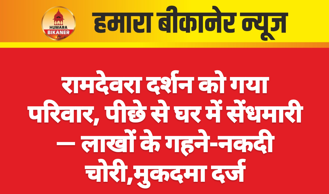 बीकानेर।रामदेवरा दर्शन करने के लिए गए परिवार के पीछे से सेंधमारी कर माल पार कर ले जाने का मामला सामने आया है। इस सम्बंध में गंगाशहर पुलिस थाने में सतीमाता मंदिर के पीछे रहने वाले राजकुमार सोनी ने अज्ञात के खिलाफ मुकदमा दर्ज करवाया है। घटना बद्री भैरू मंदिर के पास चोपड़ा बाड़ी में 9 नवंबर से 10 नंबर की सुबह के बीच की है। इस सम्बंध में परिवादी ने बताया कि वह अपने परिवार के साथ रामदेवरा दर्शन के लिए गया हुआ था।