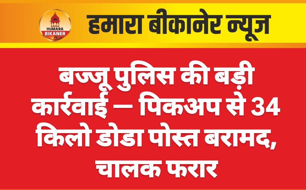 बीकानेर। बीकानेर जिले में पिछले लंबे समय से तस्करों का बोलबाल ज्यादा है आये दिन अवैध एमडी, डोडा पोस्त जब्त कर रही है। इसी क्रम में पुलिस महानिरीक्षक पुलिस रेंज के हेमंत कुमार शर्मा व एसपी कावेन्द्र सिंह सागर के निर्देश पर पुलिस अवैध तस्करों को पकडऩे का काम कर रही है। इस क्रम में प्रेम सिंह उप निरीक्षक थानाधिकारी पुलिस थाना बज्जू ने मय टीम 11 नवम्बर को पुलिस ने रात्रि को बज्जू से बांगङसर रोङ पर वाहनों की चैकिंग शुरु की गई, इस दौरान बज्जू की तरफ से एक पीकअप गाङी आई, जिसको रुकने का ईशारा किया लेकिन पीकअप गाङी का चालक अपनी गाङी को सङक से निचे रेतीली जमीन में उतार कर जंगल व अंधेरा का फायदा उठाकर मौका से भाग गया, पीकअप गाङी की तलाशी ली गई तो दो अलग – अलग प्लास्टिक कट्टों में कुल 34 किलो 305 ग्राम अवैध डोडा भरे मिले, डोडा पोस्त सहित पीकअप गाङी को जब्त किया जाकर पीकअप गाङी चालक के विरुद्ध एनडीपीएस एक्ट की सक्षम धाराओं में अभियोग पंजीबद्ध किया गया है। पीकअप गाङी का चालक पीकअप गाङी को साईड में रेतिली जमीन में छोङकर रात्रि में अंधेरे का फायदा उठाकर मौका से भाग गया था, जिसको ट्रेस आउट करने के प्रयास जारी है।