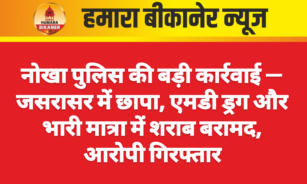 बीकानेर। जिले के नोखा थाना में जिला पुलिस अधीक्षक कावेंद्र सिंह व अतिरिक्त पुलिस अधीक्षक ग्रामीण कैलाश सांधू के निर्देशन में सीआई आलोक सिंह एवं टीम ने जसरासर क्षेत्र में कातर रोड पर स्थित एक कमरे पर छापा मारा। इस कार्रवाई में नारकोटिस यूरो की टीम भी साथ रही। छापे के दौरान पुलिस को 30 ग्राम घातक नशा एमडी तथा 15 पेटी बीयर, आठ पेटी देशी 19 बोतल अंग्रेजी शराब बरामद हुई। मौके से आरोपी जसरासर निवासी मामराज जाट निवासी को गिरतार किया गया है पकड़े गए आरोपी से पूछताछ जारी है। पुलिस अब यह पता लगाने में जुटी है कि वह यह एमडी ड्रग और शराब कहां से खरीदकर लाता था और किन किन लोगों को बेचता था। पुलिस टीम का कहना है कि इस कार्रवाई के बाद ड्रग नेटवर्क के कई और नाम सामने आने की उमीद है। पुलिस का कहना है कि नशे के खिलाफ लगातार कार्रवाई जारी रहेगी और किसी भी कीमत पर नशे का अवैध कारोबार नहीं चलने दिया जाएगा।