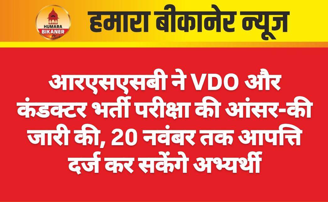बीकानेर। राजस्थान कर्मचारी चयन बोर्ड (RSSB) ने ग्राम विकास अधिकारी (VDO) भर्ती परीक्षा-2025 और कंडक्टर भर्ती परीक्षा-2024 की आंसर-की जारी कर दी है। परीक्षा में शामिल अभ्यर्थी अब बोर्ड की आधिकारिक वेबसाइट rssb.rajasthan.gov.in पर जाकर अपनी आंसर की डाउनलोड और चेक कर सकते हैं।