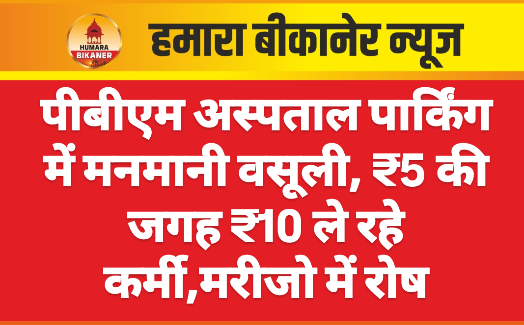 बीकानेर। पीबीएम अस्पताल की दुपहिया पार्किंग में मनमानी वसूली का मामला सामने आया है। अस्पताल प्रशासन द्वारा दुपहिया वाहन के लिए तय किए गए ₹5 के शुल्क की जगह पार्किंग कर्मी लोगों से ₹10 वसूल कर रहे हैं। पार्किंग ठेकेदार के कर्मचारियों द्वारा खुलेआम निर्धारित राशि से अधिक पैसे लेने पर वाहन चालकों में भारी रोष है।