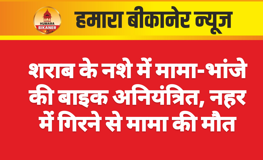 बीकानेर।शराब पीकर निकले मामा-भांजे की बाइक अनियंत्रित होने और मामा की नहर में गिरने से मौत हो जाने की खबर सामने आयी है। घटना बीछवाल पुलिस थाना क्षेत्र से जुड़ी है। इस सम्बंध में गैरसर निवासी विजय ने रिपोर्ट दी है।परिवादी ने बताया कि वह अपने मामा तारांच के साथ 12 नवंबर को हुंसगसर हैड के पास शराब पी। जहां से बाइक पर घर जाने के लिए निकले। इस दौरान रास्ते में बाइक अनियंत्रित हो गयी। बाइक के अनियंत्रित होने से उसके मामा ताराचंद नहर में गिर गए और मौत हो गयी। पुलिस ने प्रार्थी की रिपोर्ट के आधार पर मर्ग दर्ज कर जंाच शुरू कर दी है।