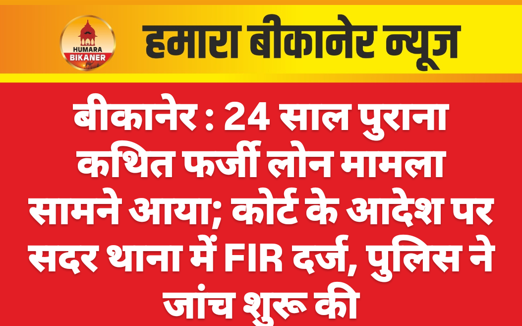 बीकानेर शहर के जस्सुसर गेट क्षेत्र के निवासी श्यामसुन्दर मोहता द्वारा 24 साल पुराने कथित फर्जी लोन प्रकरण में अदालत में परिवाद प्रस्तुत किया गया। परिवाद पर एसीजेएम नं. 2 बीकानेर के आदेश से सदर थाना पुलिस ने विभिन्न धाराओं में मुकदमा दर्ज कर जांच शुरू कर दी है।